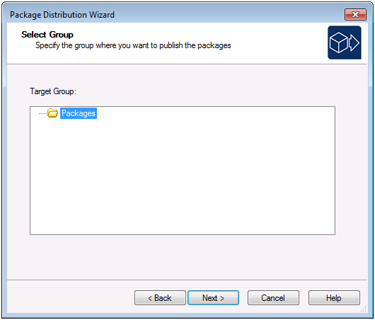 On this panel, which is displayed if you selected ConfigMgr on the Distribution Type panel, select the Target Group on the ConfigMgr Server where you want to publish the package and click Next to continue.