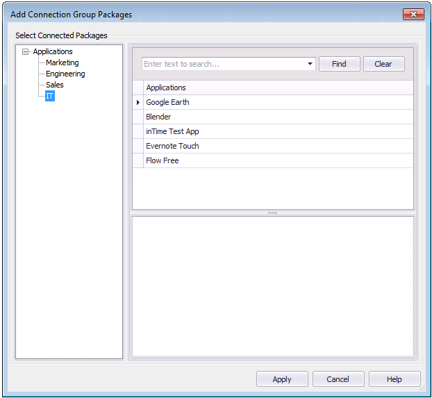 - Under Select Connected Packages , select the group in the tree that contains the App-V package that you want to add to the connection group. The packages in that group are listed under Applications .