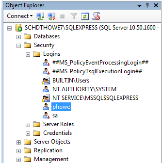 2. In the Object Explorer , open the Security > Logins node and right-click on the user account or user group that you want to assign permissions to.