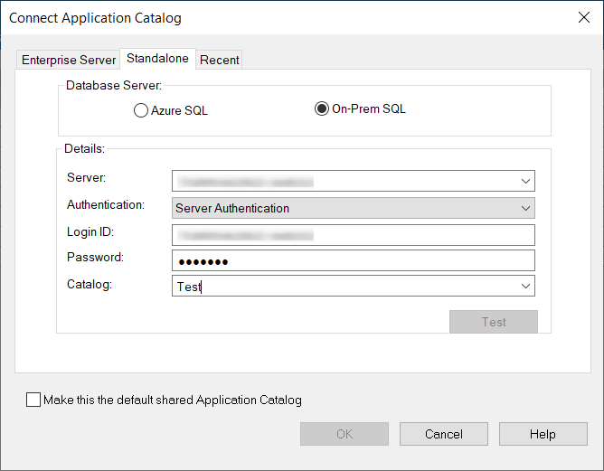 To create a new SQL / Azure Server Application Catalog database, perform the following steps.