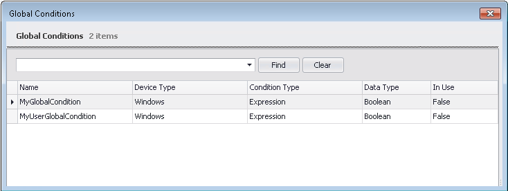 | Search Box | Use this box along with the Find button to filter a large list of global conditions. |