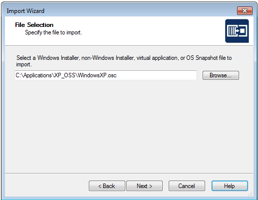 On the OS Snapshot File Selection panel, which opens when you select the Snapshots group on the Environment tab of the Application Manager tree and then click Import in the toolbar, you are prompted to select the OS snapshot file that you want to import.