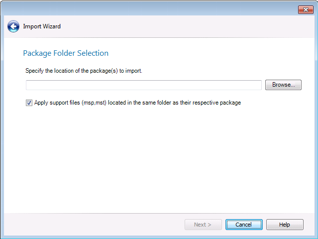 Optionally, if you also want to import package support files (such as transforms or patch files), select the Apply support files (.msp, .mst) located the same folder as their respective package option.