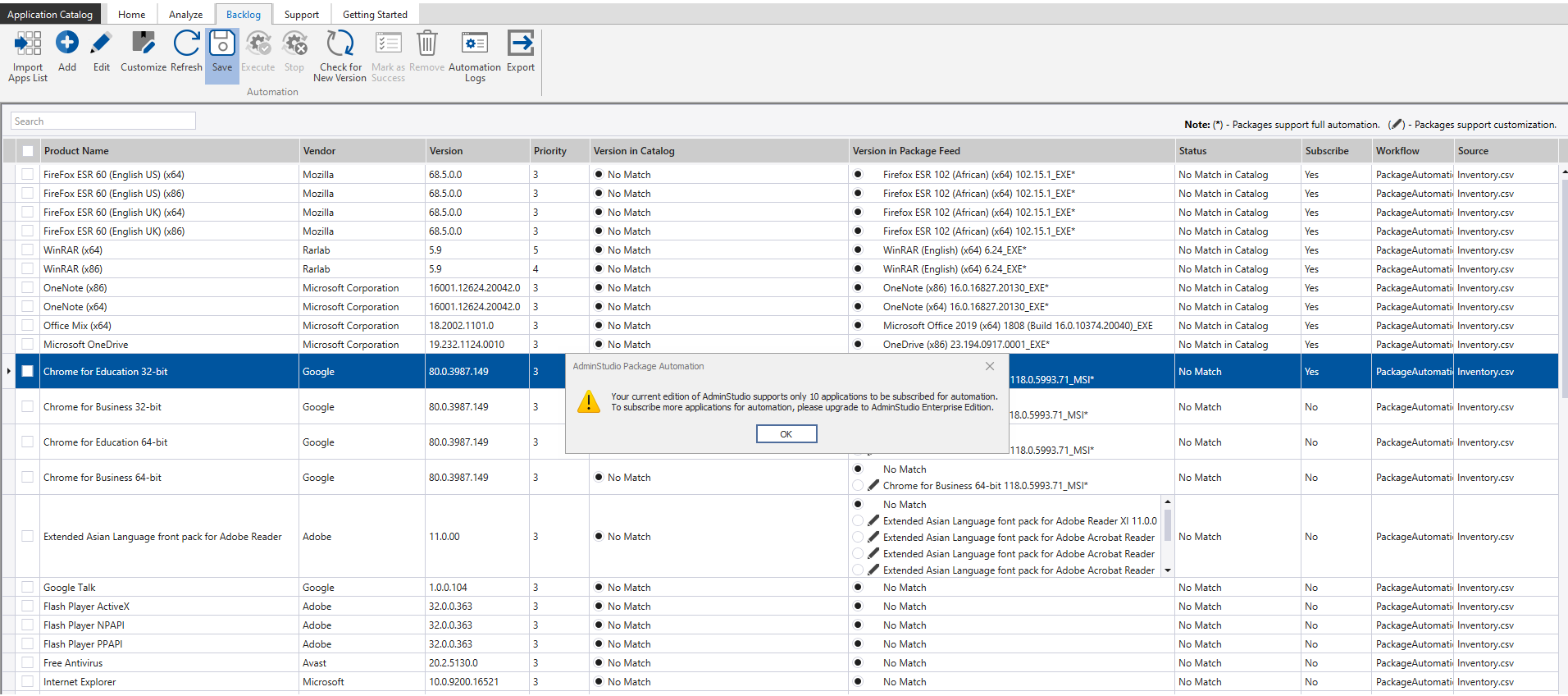 1. After matching the applications, click Execute in the ribbon. Pre-configured Package Automation workflow is initiated and corresponding messages are displayed in the Output window.