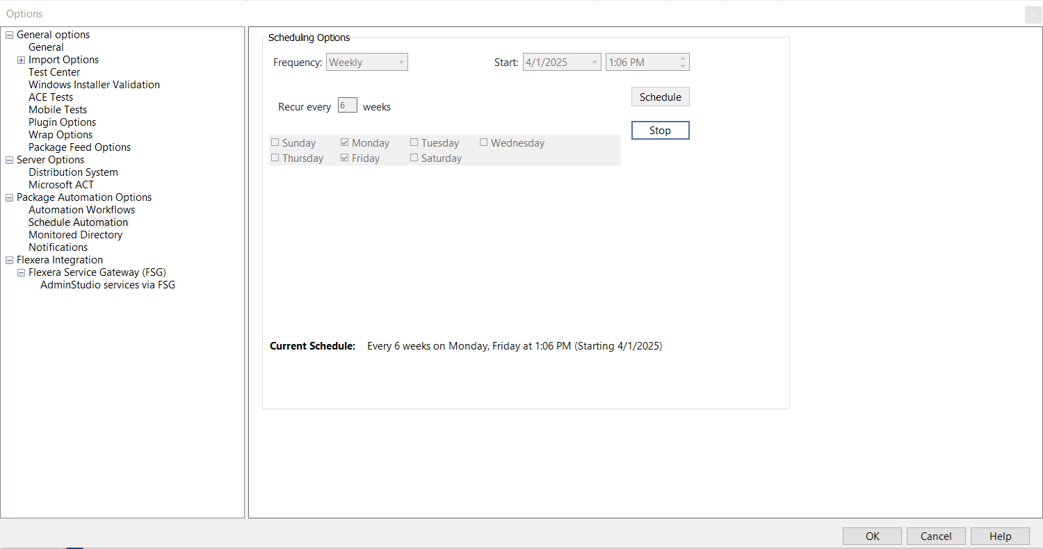 2. Under Package Automation Options , select Schedule Automation . The Scheduling Options tab opens.