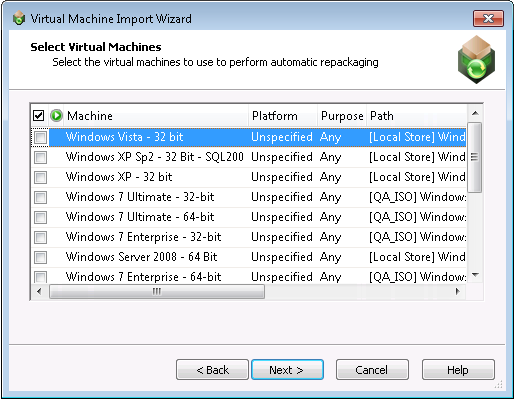 • Any—Make this virtual machine available for use during both automated repackaging and package testing.