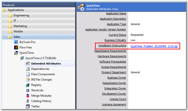 - Review the information in the Additional Details area, which contains a text description of the steps that were taken, along with information that is internal to the repackaged application.