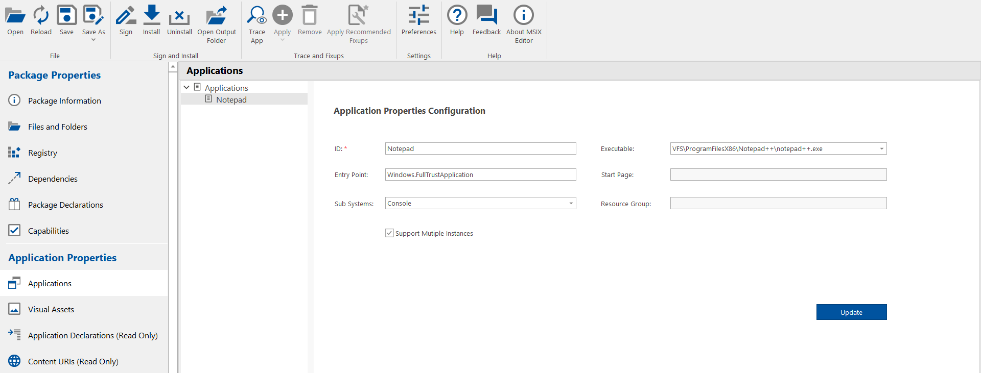 - Modify as necessary and click Update .