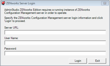 1. Click Login . AdminStudio ZENworks Edition opens.